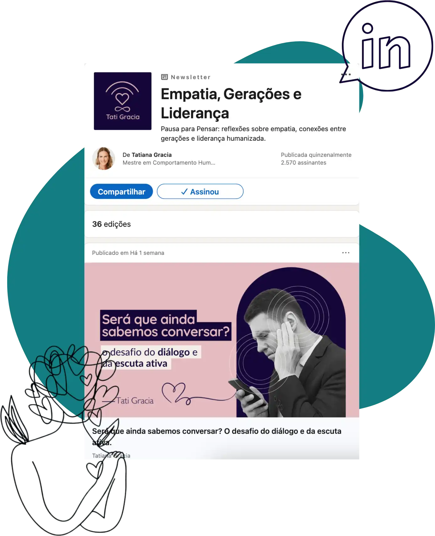 Assine a newsletter 'Pausa para Pensar' do LinkedIn e receba semanalmente reflexões sobre empatia, conexões entre gerações e liderança humanizada.