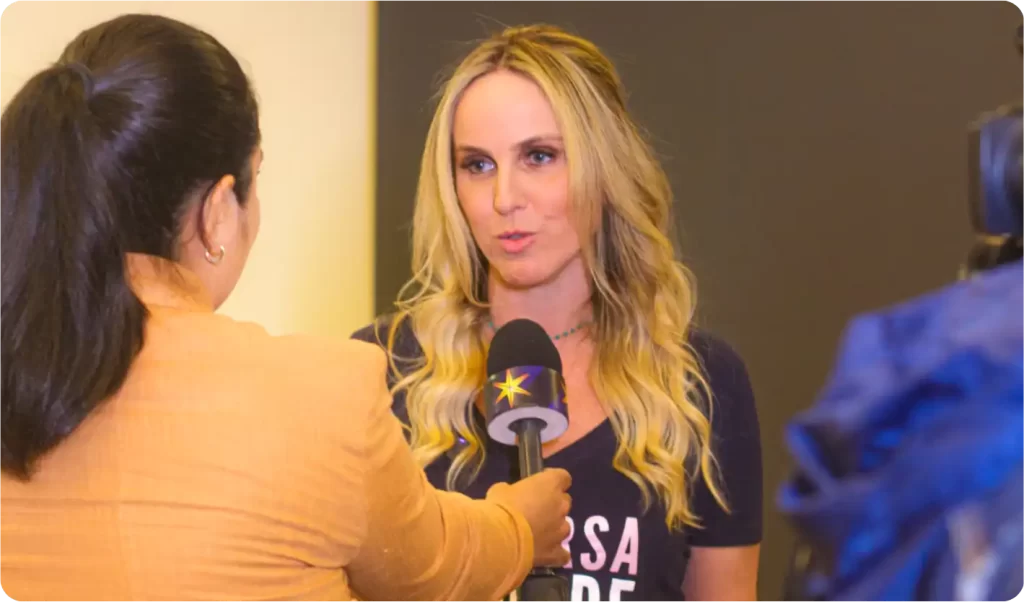 Tati Gracia leva Simulador ao programa Mulheres da TV Gazeta e emociona Pamela Domingues