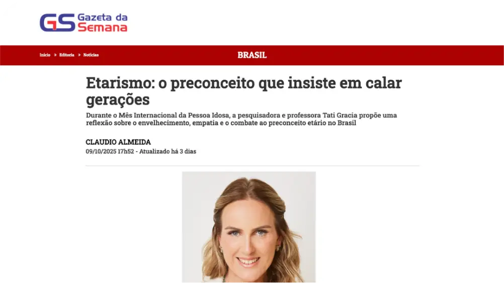 Em entrevista ao Portal Gazeta da Semana, Tati Gracia alerta para os impactos do etarismo na sociedade